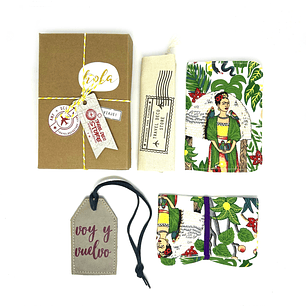 Porta pasaporte + porta documentos (tela FK) + tag equipaje - Travel Deco Store